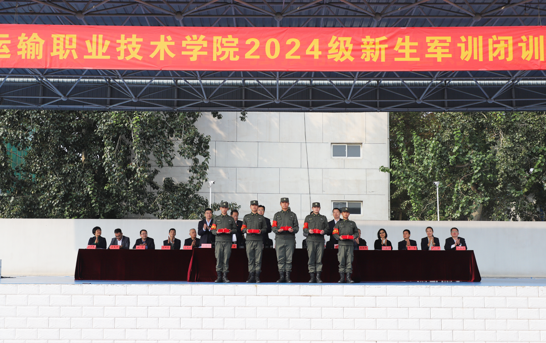 学校党委委员、副校长张军田宣读了2024级新生军训表彰决定,主席台领导为队列评比优胜班、军训标兵、内务标兵、军训标杆宿舍、优秀军训教官和“最美”军训教官代表颁发了奖状和荣誉证书。